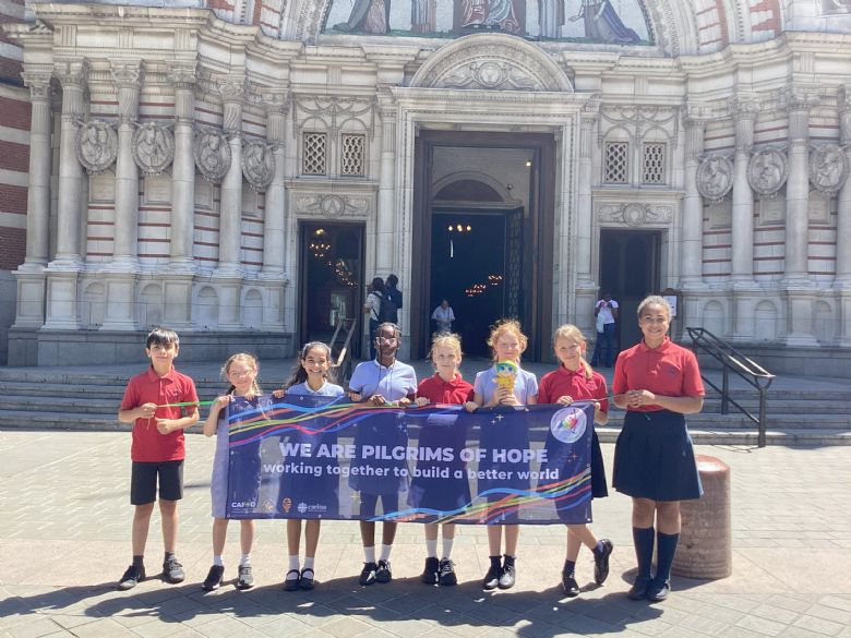 On Friday 4th July, members of the Year 6 Prayer Council embarked on a Pilgrimage to Westminster Cathedral as Pilgrims of Hope. Whilst at the Cathedral we joined for the celebration of Mass and had time to look and discover more about the Cathedral's architecture and how awe and wonder are fostered through its beautiful paintings, stained glass and statues.