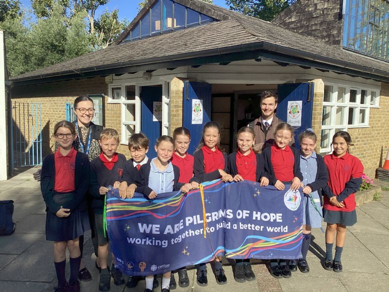 On Thursday 25 September, a group of children from Year 5 had the privilege of attending the Mission Together Jubilee Mass at St Theodore’s Catholic Church, Hampton. The Mass, celebrated by Bishop Jim Curry, brought together schools from across the Dioceses of Arundel and Brighton, Southwark, and Westminster in a joyful celebration of the Jubilee Year of Hope.