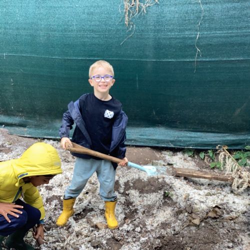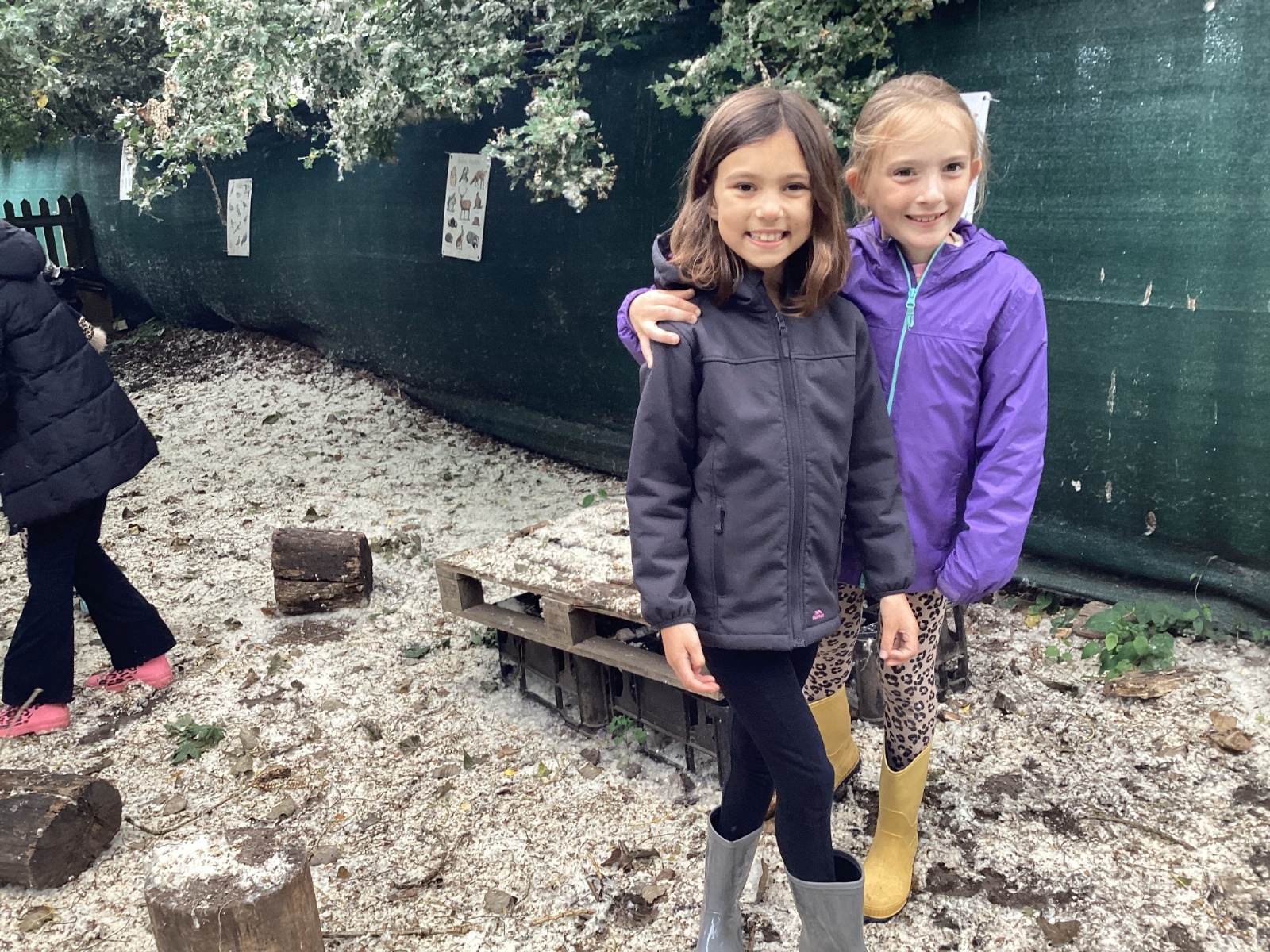 Today Blue Class ventured out into our Forest School Area. We were met with a surprise dusting of blossom that had created a fluffy snow-like blanket on the ground.