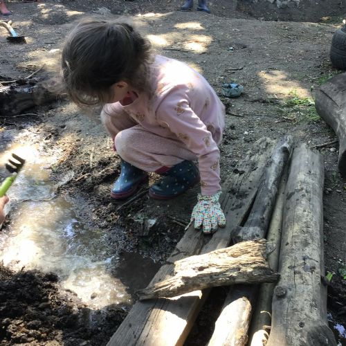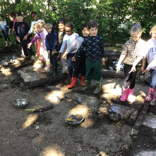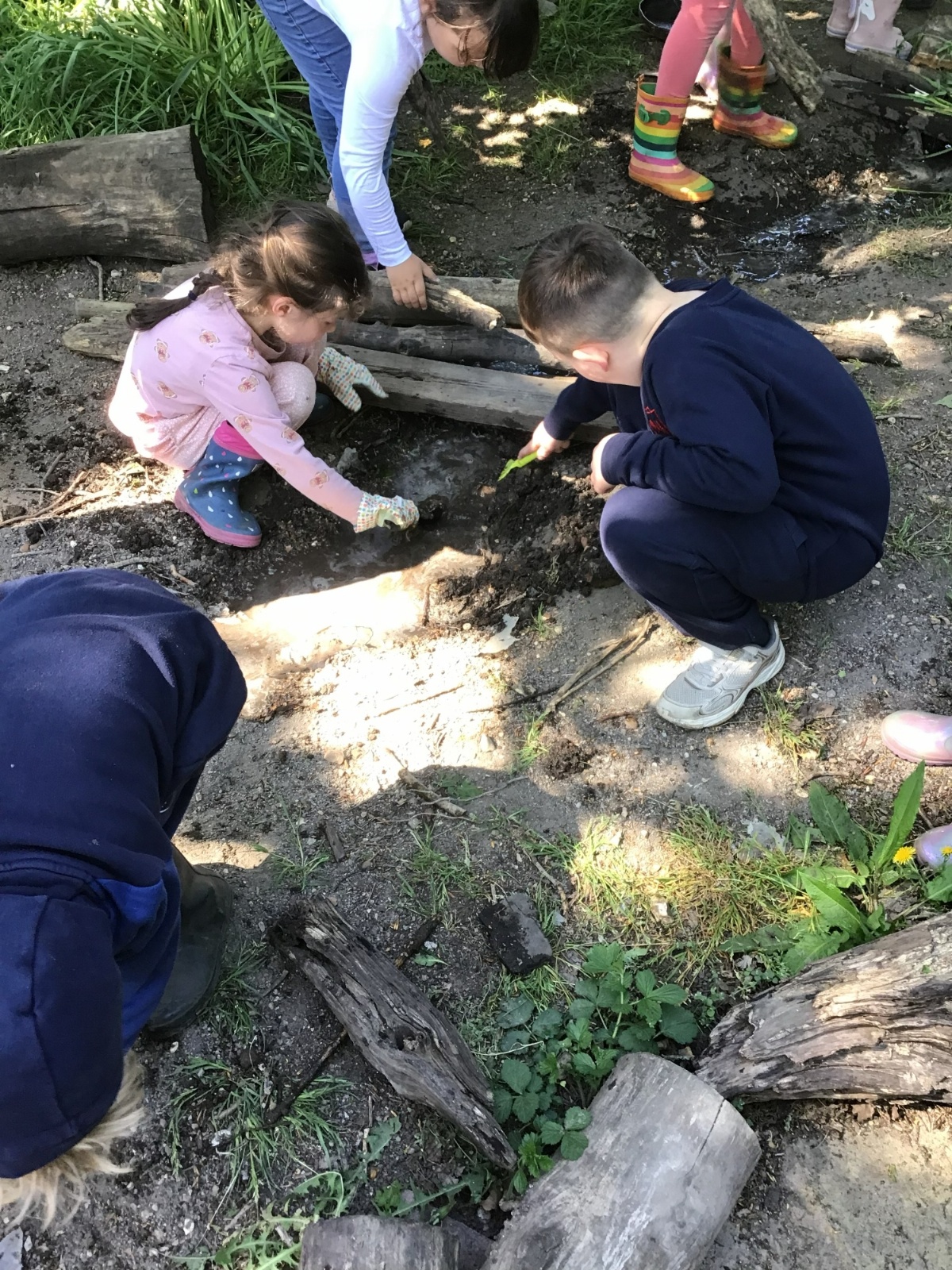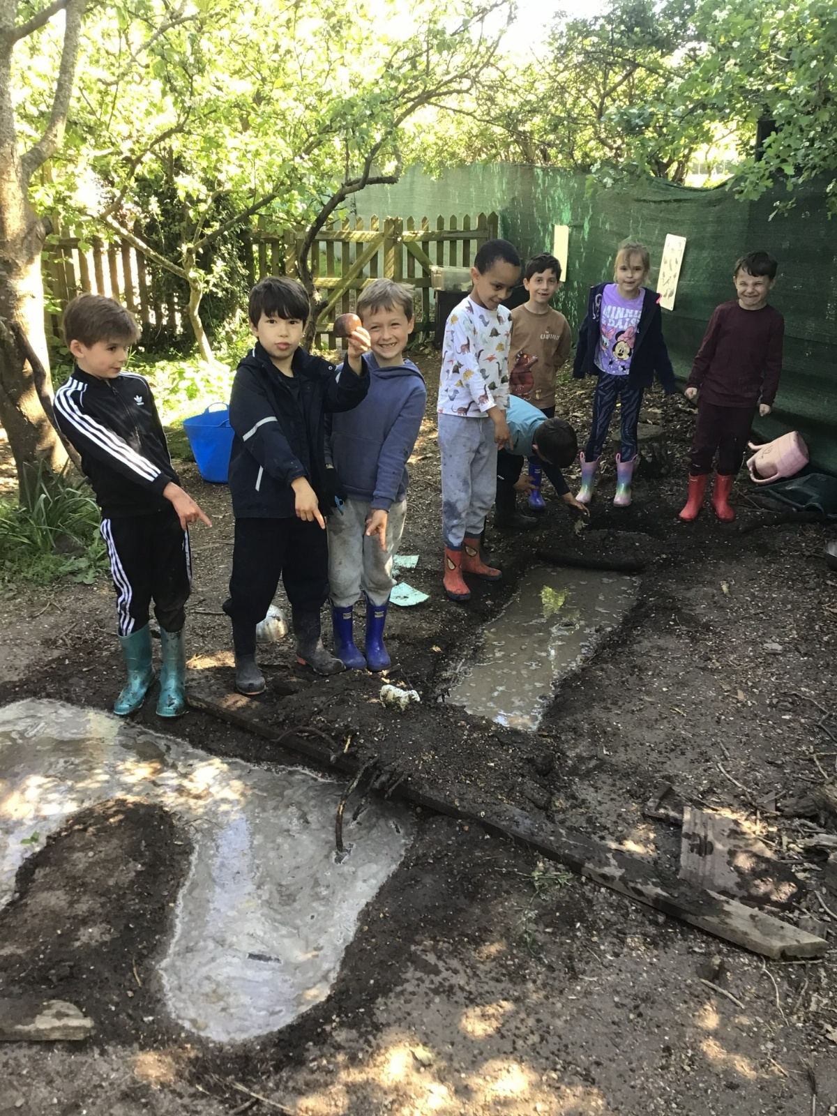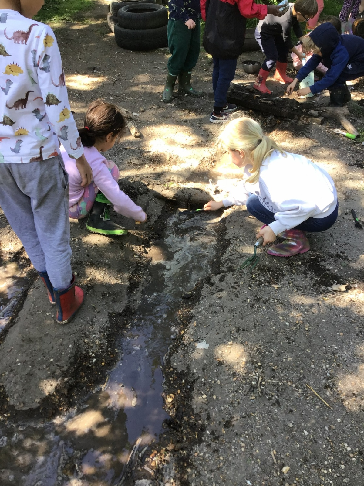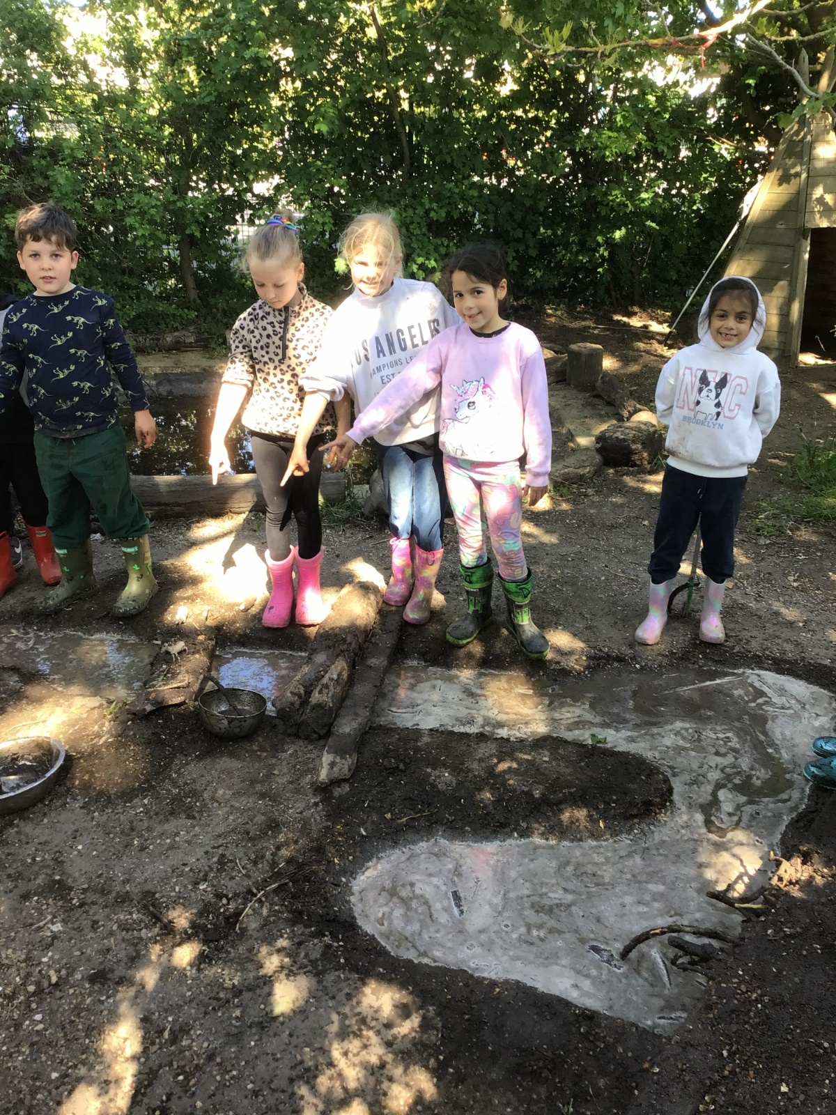 Violet class had a wonderful team building experience today while out in Forest School. They worked in smaller groups to build a bridge for their ram/goat to cross the bridge without falling into the 'river'. Working as a class, they dug out trenches and filled them with lots of water. They soon realised that by having the right ratio of mud to water, they could make a mixture to stick all the sticks together. Fun was had by all!