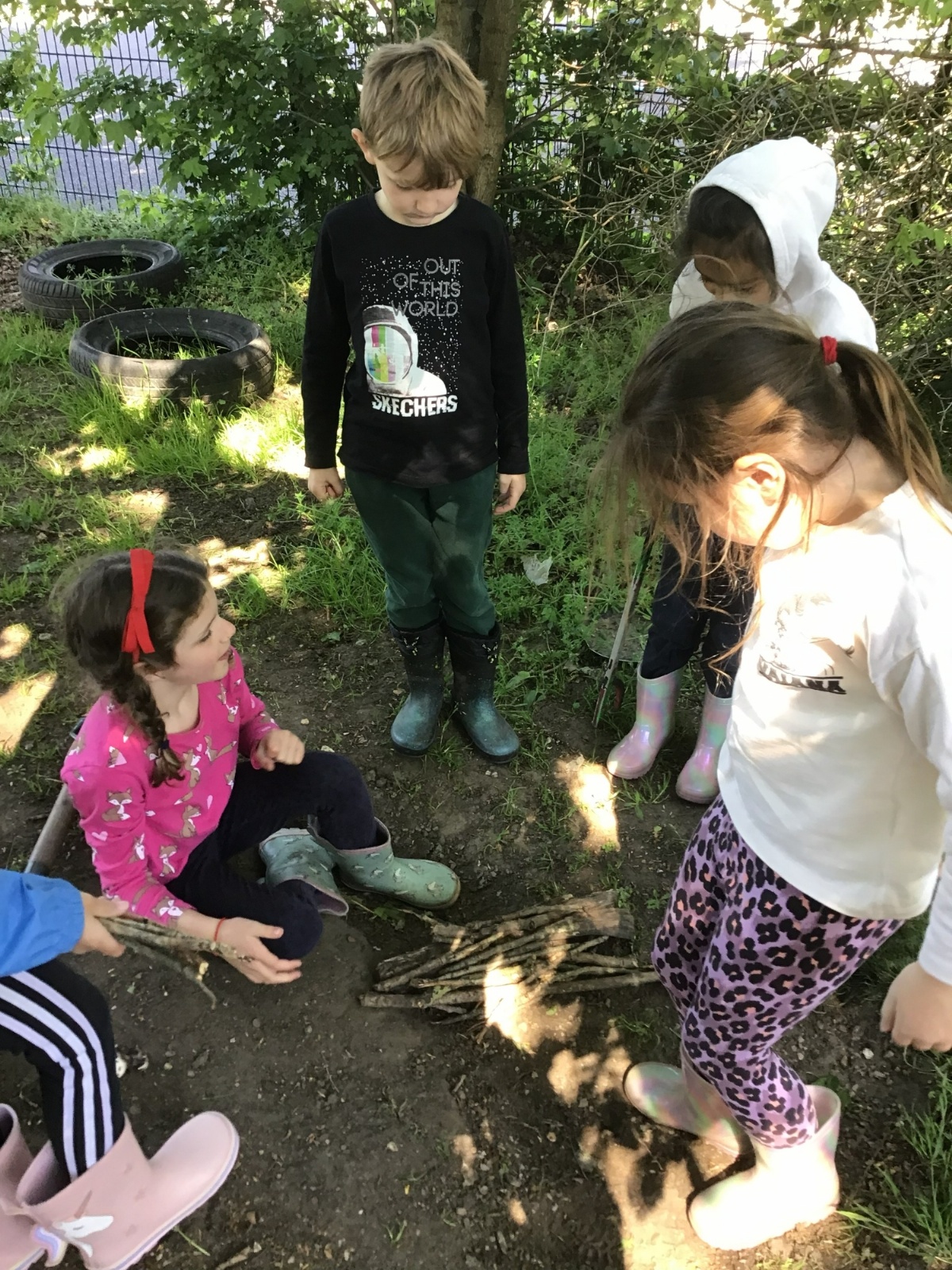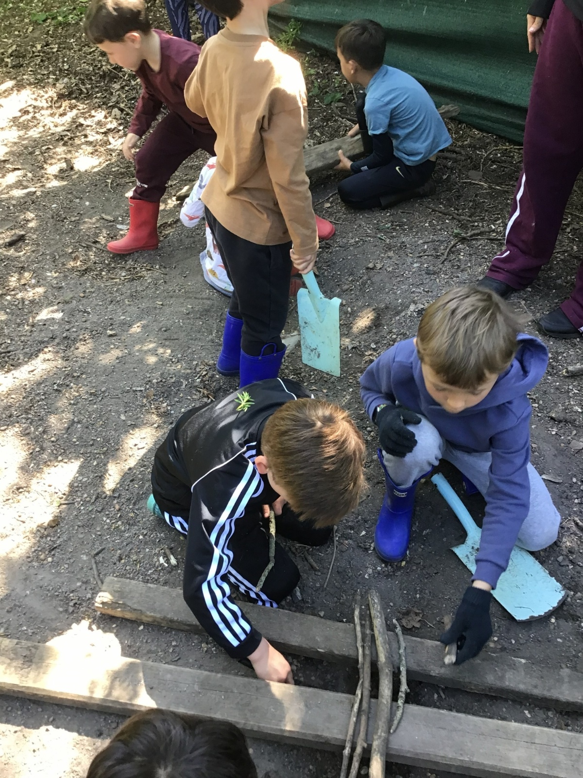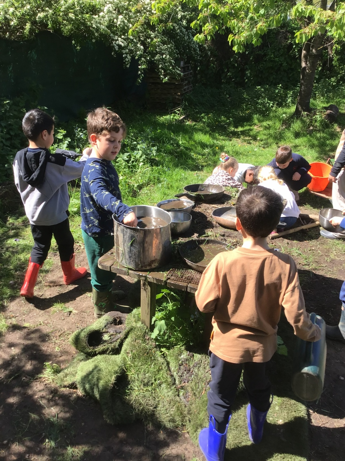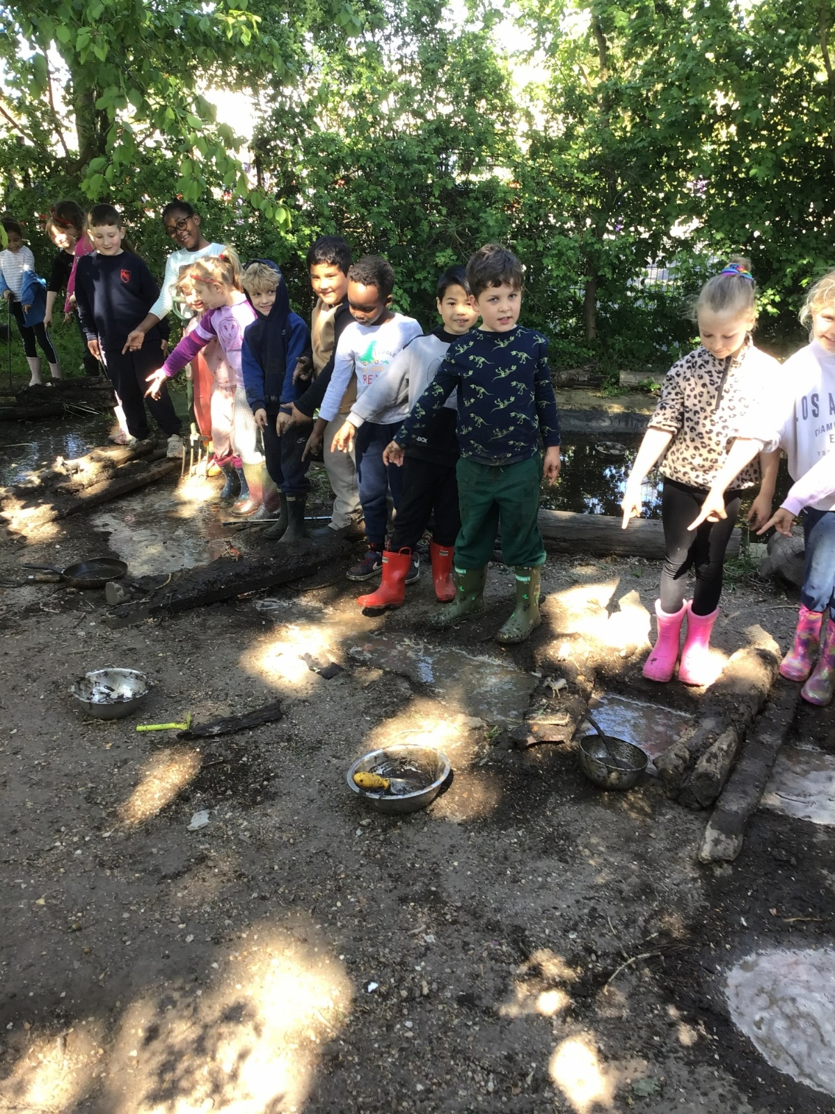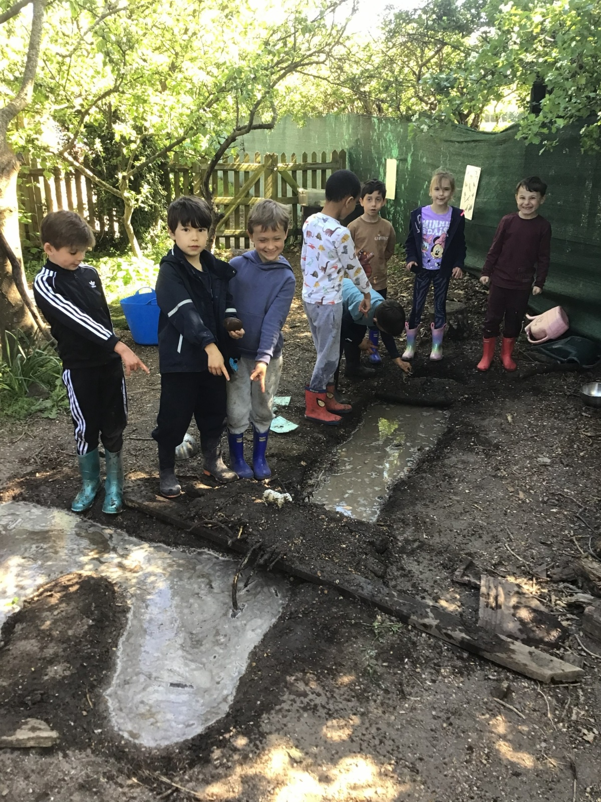 Violet class had a wonderful team building experience today while out in Forest School. They worked in smaller groups to build a bridge for their ram/goat to cross the bridge without falling into the 'river'. Working as a class, they dug out trenches and filled them with lots of water. They soon realised that by having the right ratio of mud to water, they could make a mixture to stick all the sticks together. Fun was had by all!