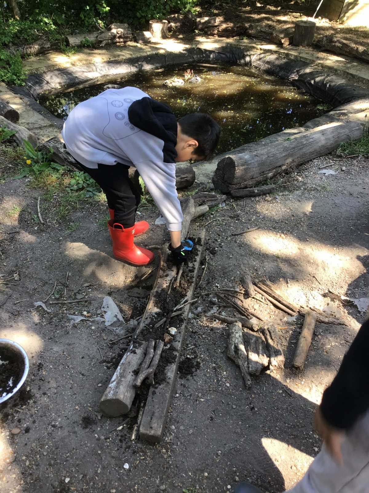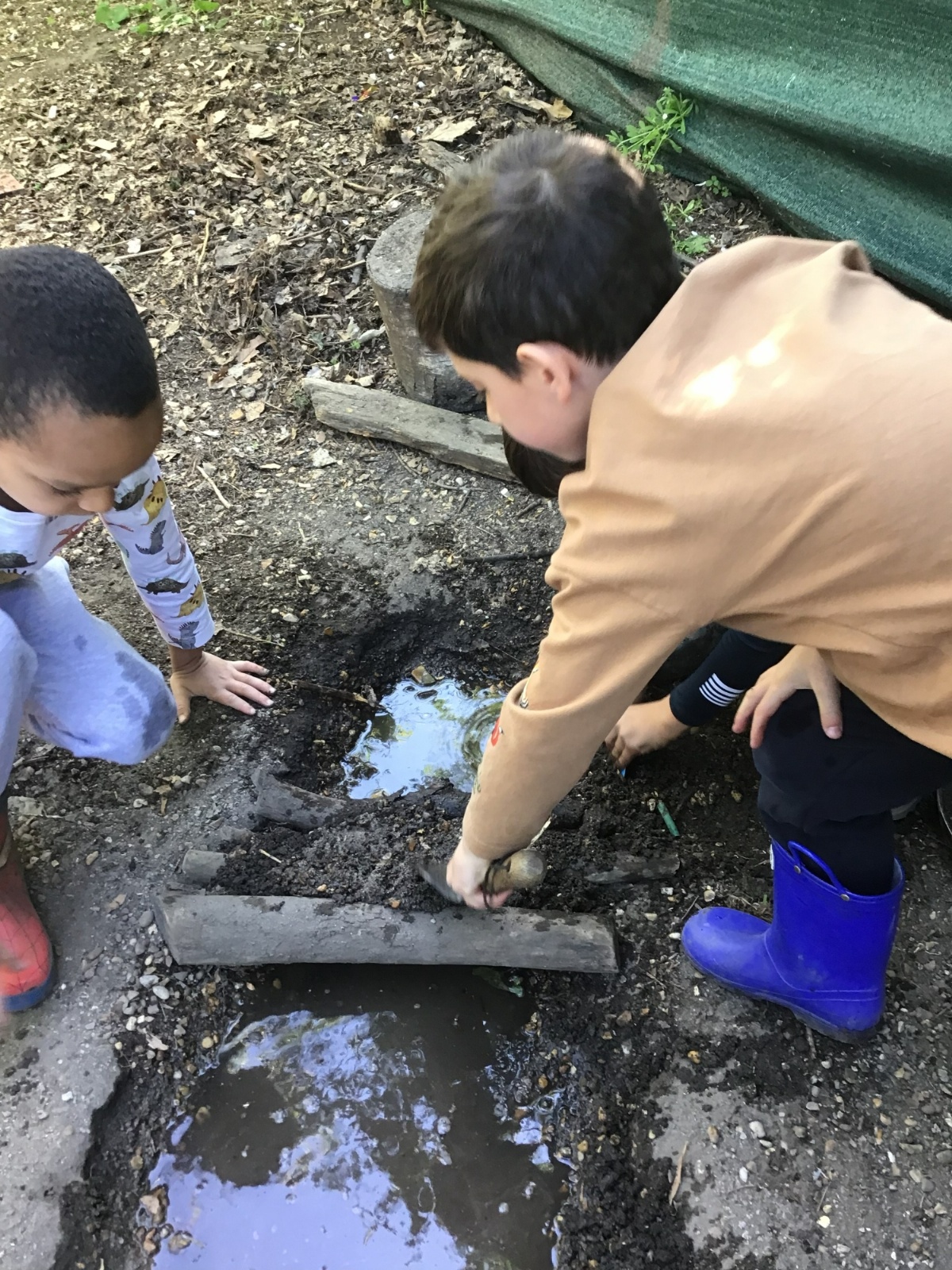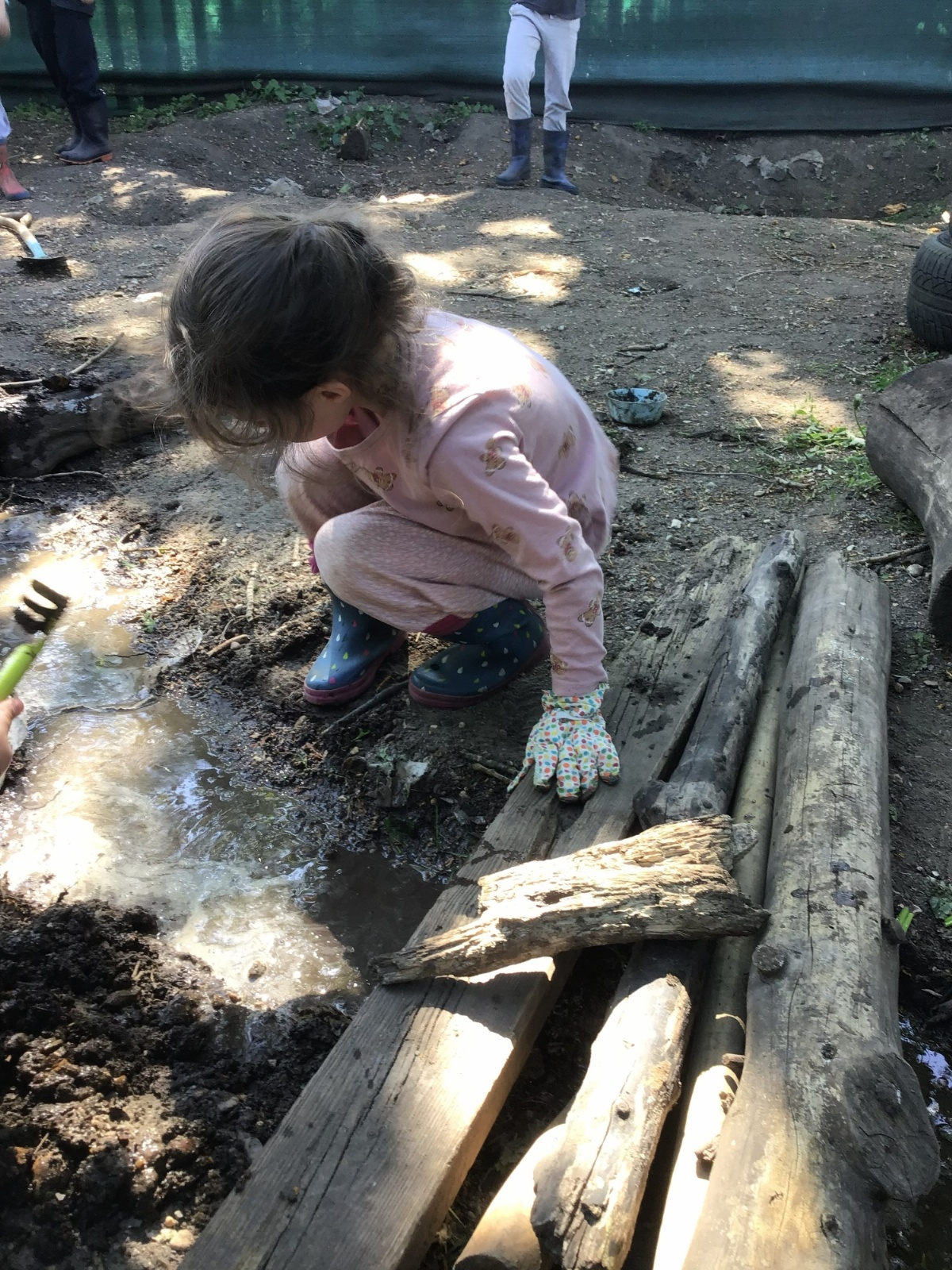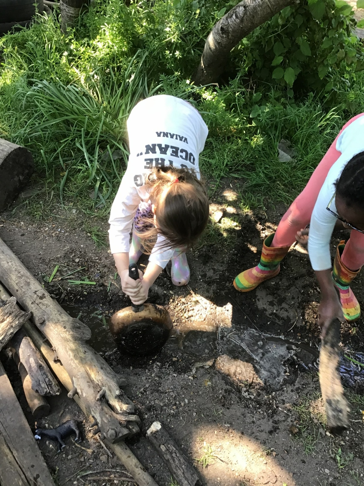 Violet class had a wonderful team building experience today while out in Forest School. They worked in smaller groups to build a bridge for their ram/goat to cross the bridge without falling into the 'river'. Working as a class, they dug out trenches and filled them with lots of water. They soon realised that by having the right ratio of mud to water, they could make a mixture to stick all the sticks together. Fun was had by all!