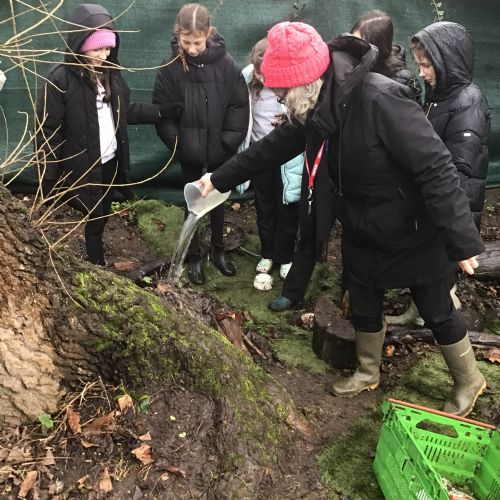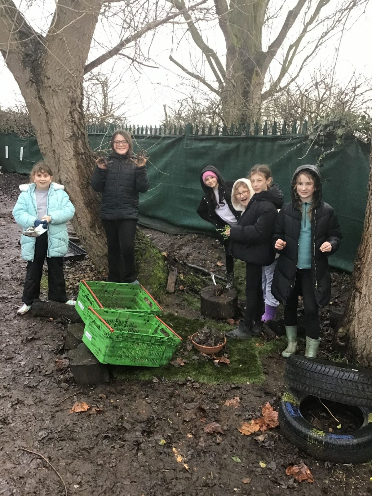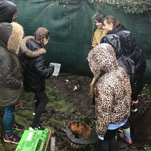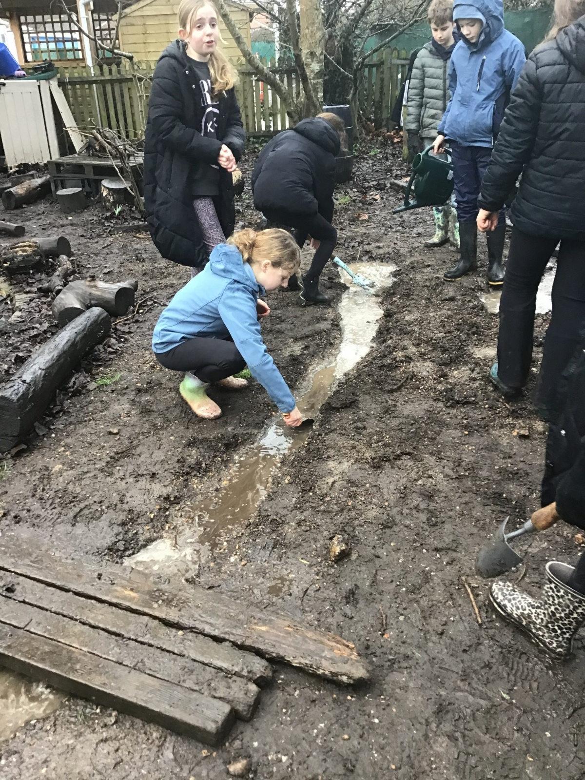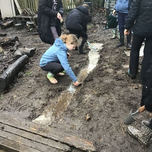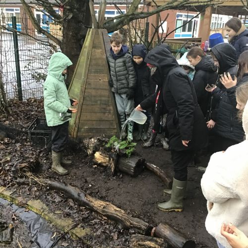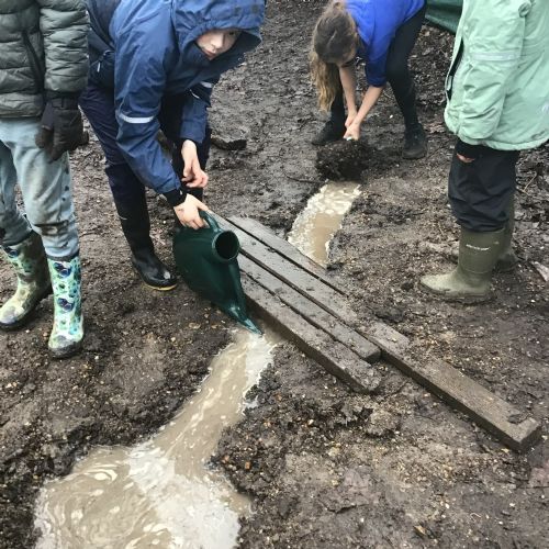 The Year 6 classes may have had a few wet afternoons outside at Forest school, but that did not stop them from exploring. They built dens for their little goblins and even began to dig up some trenches for a stream to be made going from the pond to the fence. Muddy and wet afternoons had by all.