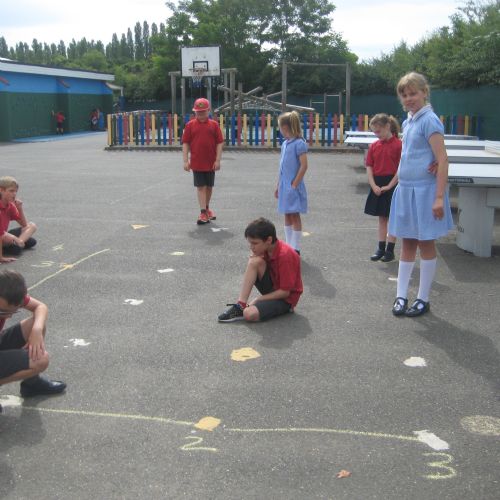 Year 4 took maths outside this morning to have hands on experiences of our new topic Position and Direction. Children used the x and y axis to go to coordinates on the grid.  Next step - Battleships!